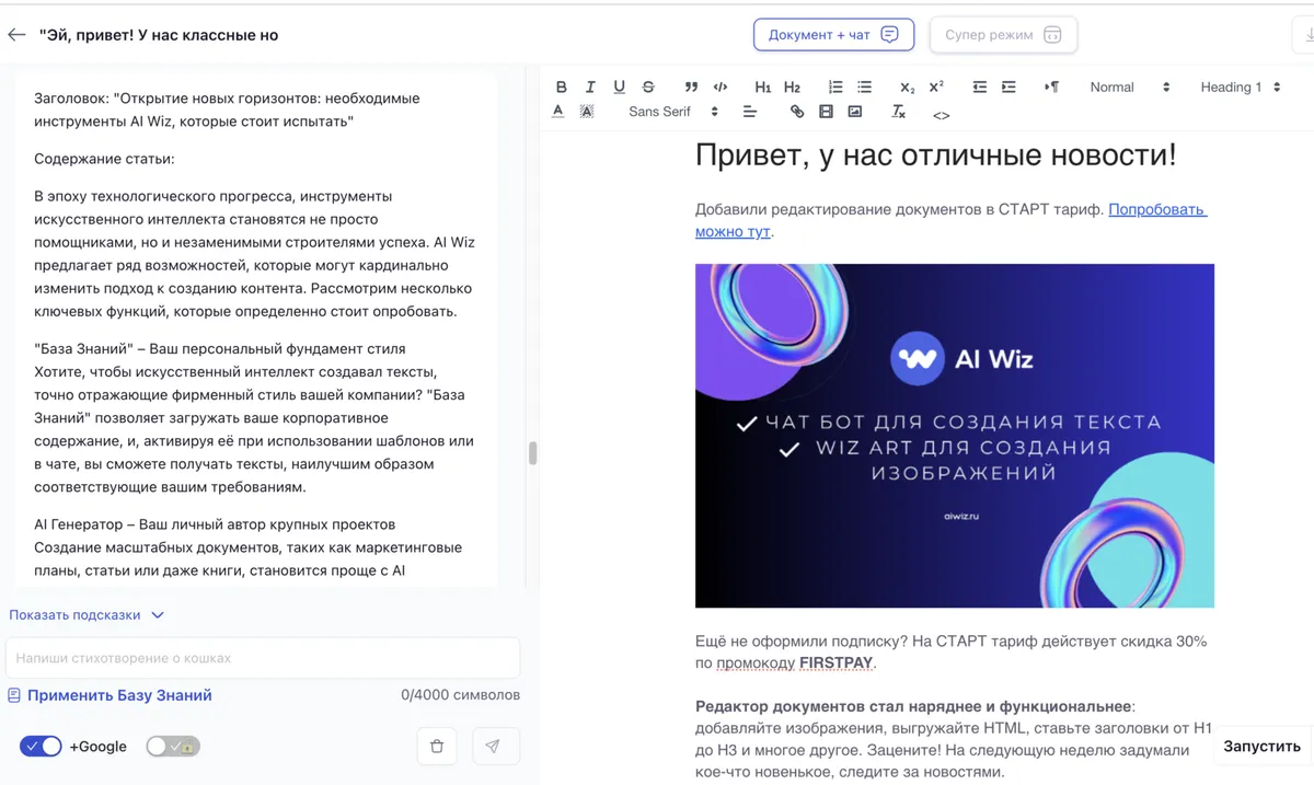 Попробуйте AI Wiz бесплатно