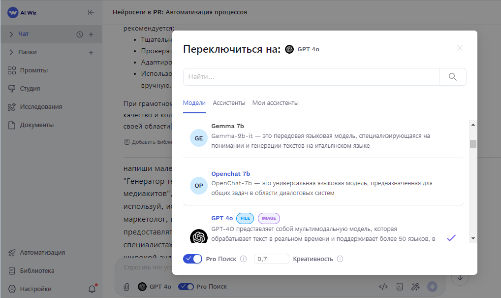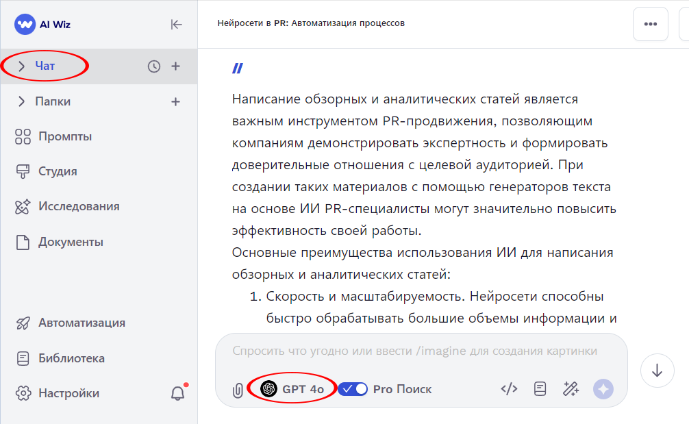 Чат в Ai Wiz - ваш персональный ИИ помощник
